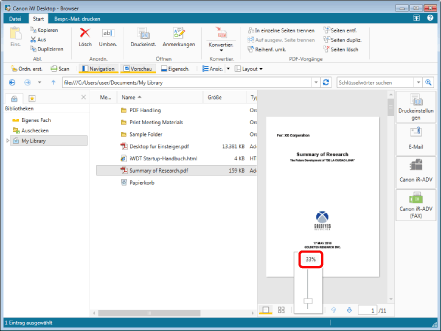 Um den Vergrößerungsfaktor festzulegen, geben Sie ihn direkt im Feld [Zoom] ein. Sie können den Vergrößerungsfaktor in 1%-Schritten eingeben. Wenn Sie einen Wert außerhalb des zulässigen Wertebereichs eingeben, werden die Seiten automatisch mit dem Vergrößerungsfaktor angezeigt, der diesem Wert am nächsten kommt. Wenn Sie keine Ganzzahl angeben, wird der bisherige Vergrößerungsfaktor beibehalten.
