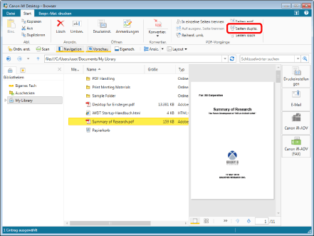 Wenn mehrere Seiten mit der Miniaturansicht ausgewählt wurden, wird das duplizierte PDF-Dokument gespeichert und an den Dokumentnamen wird "_Seitennummer der ersten ausgewählten Seite" angehängt.