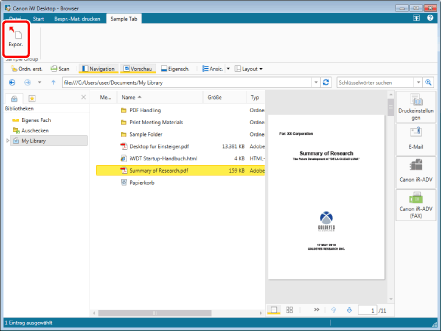 Wenn Sie ein zu exportierendes Dokument per Drag & Drop auf ein Verknüpfungssymbol oder eine Ausführungsdatei der zugeordneten Anwendung ziehen, wird die Anwendung gestartet und das betreffende Dokument in ihr geöffnet.