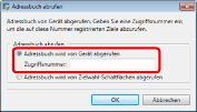 Wenn auf dem Gerät kein Zugriffsnummer-Management durchgeführt wird, wählen Sie [Adressbuch wird von Gerät abgerufen] und klicken Sie auf [OK], ohne eine Zugriffsnummer einzugeben.