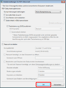 Die im Dialogfeld [Detaileinstellungen für PDF-Dokument] festgelegten Werte werden für die nächste Verarbeitung beibehalten.