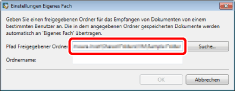 * Beachten Sie, dass wenn der Ordner als freigegeben konfiguriert ist, Sie ihn als Ordner für den Empfang über das Netzwerk festlegen können.