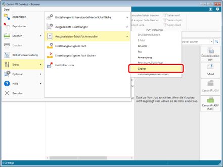 Führen Sie zum Festlegen des Zielordners eines der folgenden Verfahren aus, um in der Ausgabeleiste im Desktop Browser-Bildschirm ein Zielfachausgabesymbol zu registrieren.