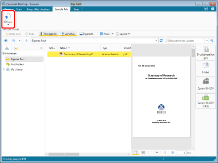Auf folgende Weise können Sie überprüfen, ob das Dokument erfolgreich in den Ordner "Eigenes Fach" übertragen wurde.