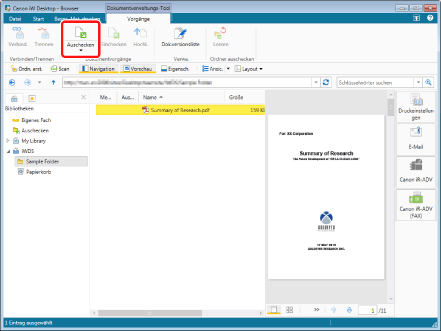 (Auschecken) und wählen Sie [Dokument auschecken].