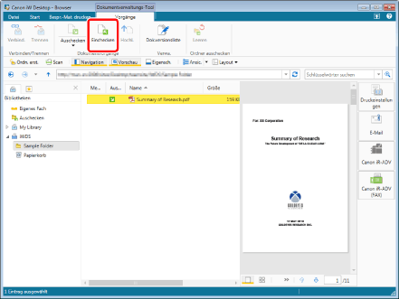 Oder klicken Sie mit der rechten Maustaste und wählen Sie [Dokument einchecken].