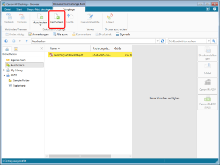 Wenn mehrere Dokumente ausgewählt sind, ist das Einchecken nicht möglich.