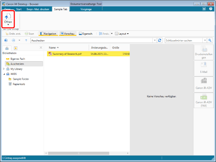 Es können maximal 10 Dokumente mit einem einzigen Vorgang geöffnet werden. Wenn Sie 11 oder mehr Dokumente auswählen, werden nur die ersten 10 Dokumente geöffnet.