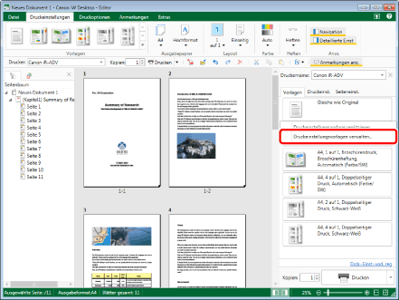 Wählen Sie im Menü [Datei] > [Einstellungen/Verwaltung] > [Druckeinstellungsvorlagen verwalten]