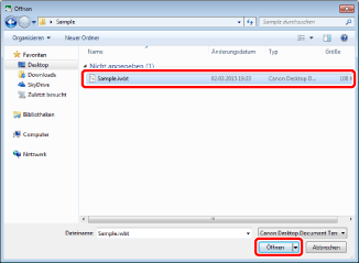 Wählen Sie eine Canon Desktop Document Template-Datei (*.iwbt) und klicken Sie auf [Öffnen].
