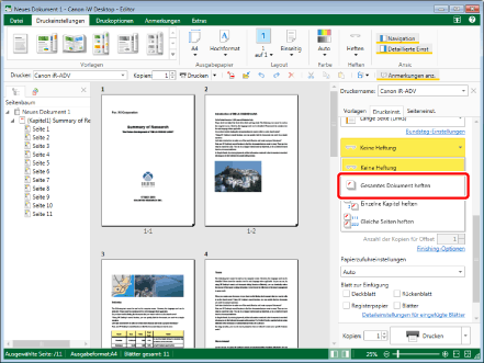 (Heften) und wählen Sie [Gesamtes Dokument heften] aus.