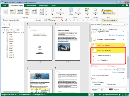 (Heftposition) und wählen Sie die Position von Eco (Heftfrei) aus.