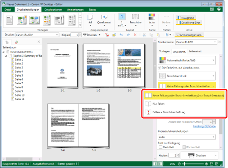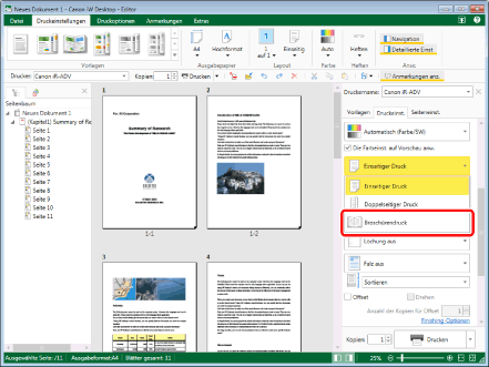 Wenn als Papierausgabeformat ein Papierformat ausgewählt wurde, für das Broschürendruck nicht möglich ist, können Sie [Broschürendruck] nicht auswählen. Wählen Sie in diesem Fall ein Ausgabepapierformat, für das mit Ihrem Canon-Drucker der Broschürendruck möglich ist.