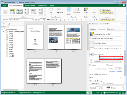 Führt den Broschürendruck für alle Seiten auf einmal durch.