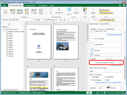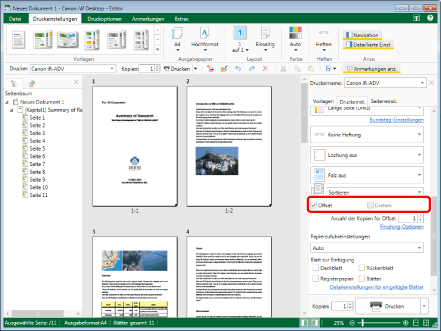 (Anzahl der Kopien für Offset) im Menüband ein.