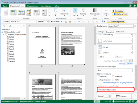 Einfügeblätter, auf denen das Dokument nicht gedruckt wird