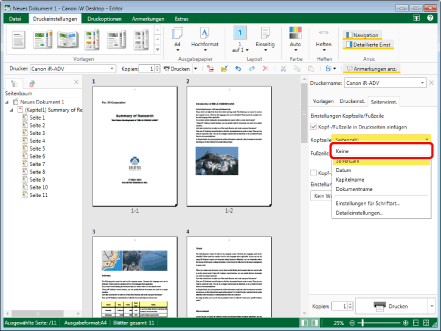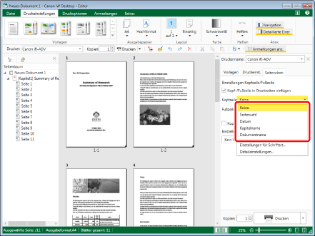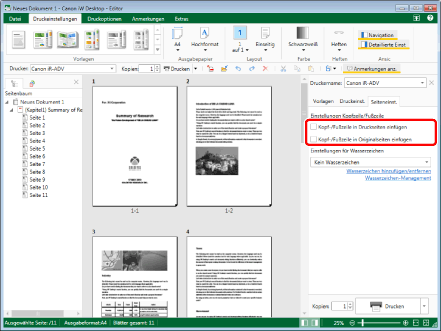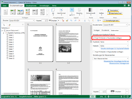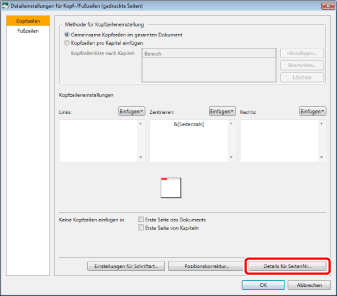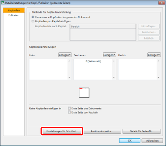 Die Schriftarteinstellungen für [Kopf-/Fußzeile in Druckseiten einfügen] und [Kopf-/Fußzeile in Originalseiten einfügen] sind identisch.