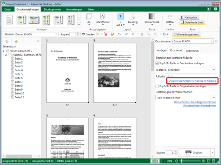Die Vorgehensweise für die Kopf-/Fußzeile bei gedruckten Seiten und bei Originalseiten ist identisch.