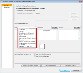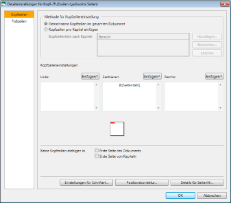 Nähere Informationen zum Konfigurieren der Kopf-/Fußzeile auf Kapitelbasis finden Sie hier: