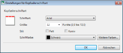 Ermöglicht Ihnen, die Schriftarteinstellungen für die Kopfzeile anzugeben.