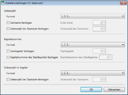 Ermöglicht Ihnen die Angabe detaillierter Einstellungen der Seitenzahl im Kapitel.