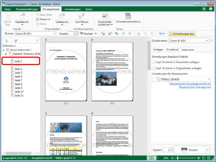 Sie können auch auf der Registerkarte [Seitenbaum] im Navigationsfenster mit der rechten Maustaste auf die Seite klicken, deren Einstellungen geändert werden sollen, und [Keine Wasserzeichen in ausgewählte Seiten einfügen] auswählen.