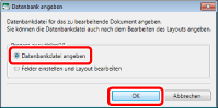 Wenn nur das Layout erstellt und die Datenbank später importiert werden soll, wählen Sie [Felder einstellen und Layout bearbeiten] und klicken Sie auf [OK]. Der Modus "Seriendruckeinstellungen" wird gestartet und die Registerkarte [Seriendruck] wird im Menüband angezeigt.