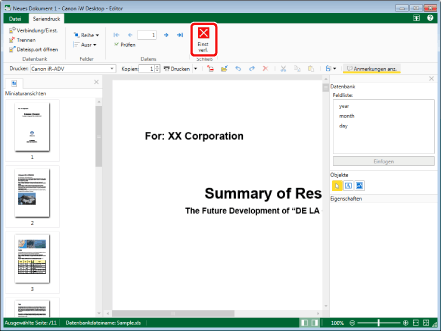 In jedem Bildschirm im Modus "Seriendruckeinstellungen" kann nur jeweils ein Dokument bearbeitet werden.
