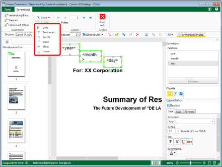Sie können die Position der von Ihnen eingefügten Felder im Modus "Seriendruckeinstellungen" von Desktop Editor ausrichten.