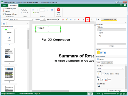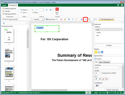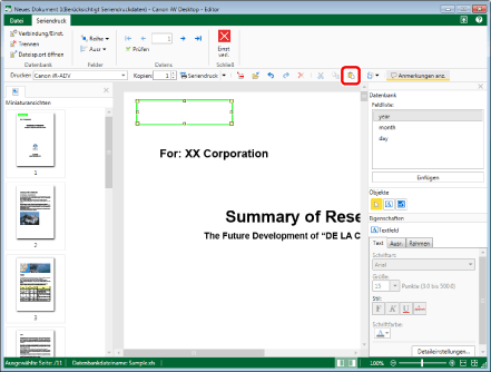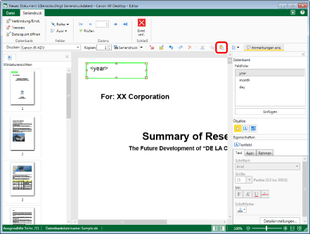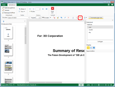 Um mehrere Seriendruckfelder auszuwählen, müssen sie sich auf derselben Seite befinden.