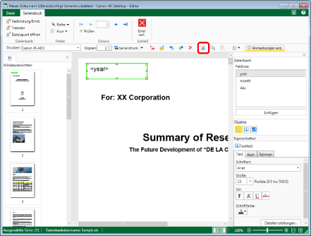 Wenn Sie alle Seriendruckfelder auf der Seite löschen möchten, führen Sie in einem Bereich im Arbeitsfenster, der kein Seriendruckfeld enthält, eine der folgenden Aktionen aus, während das Arbeitsfenster aktiv ist.