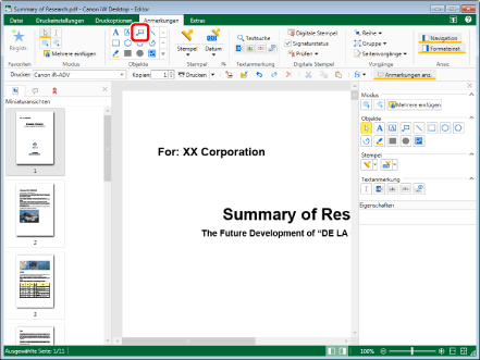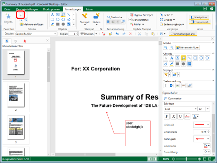 Wenn Sie Kommentare mehrmals einfügen möchten, doppelklicken Sie in der Detailansicht auf