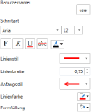 (Benutzerna.Einst.) (Schr) (Schriftgröße) (Fett) (Kursiv) (Unterstr.) (Durchstr) (Schriftfarbe) (Linienstil) (Linienbreite) (Anfang) (Linienfarbe) (Füll)Wenn bestimmte Befehle nicht im Menüband von Desktop Editor angezeigt werden, gehen Sie wie folgt vor, um sie anzuzeigen.