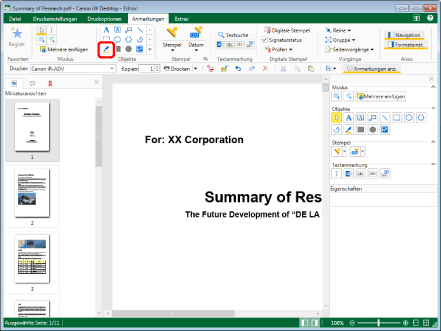 Wenn Sie Textmarker mehrmals einfügen möchten, doppelklicken Sie in der Detailansicht auf