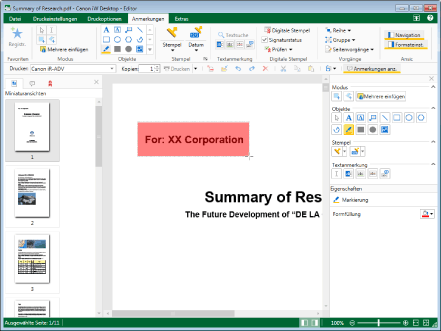 Da Textmarker immer halbtransparent sind, auch wenn sie im Vordergrund platziert werden, bleiben andere eingefügte Anmerkungen und das Dokument im Hintergrund weiterhin sichtbar.