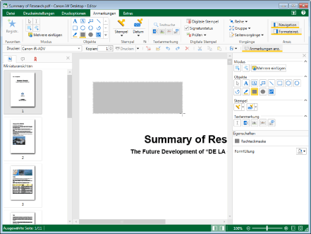 Wenn Sie Maske (Rechtecke) mehrmals einfügen möchten, doppelklicken Sie in der Detailansicht auf