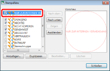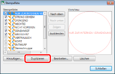 Die Text-/Bildstempel, die bei der Installation automatisch registriert wurden, können nicht bearbeitet werden. Sie können aber Text-/Bildstempel bearbeiten, die auf Grundlage dieser Text-/Bildstempel dupliziert wurden.