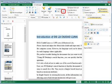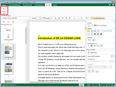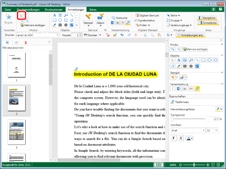 Dieser Vorgang kann auch über die Schaltflächen der Symbolleiste durchgeführt werden. Wenn bestimmte Schaltflächen in der Symbolleiste von Desktop Editor nicht angezeigt werden, gehen Sie wie folgt vor, um sie anzuzeigen.
