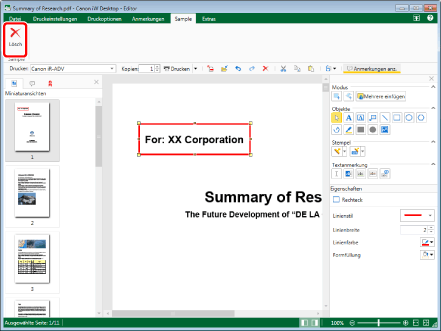 Sie können eine Anmerkung auch löschen, indem Sie sie auf der Registerkarte [Anmerkungsliste] im Navigationsfenster auswählen und die Taste [Löschen] der Tastatur drücken.
