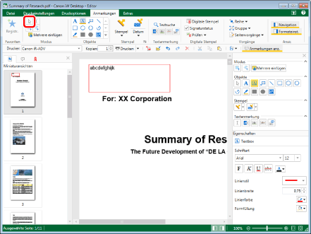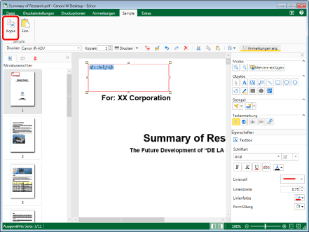 Wenn Sie das Einfügen durchführen, ohne dass die kopierte/ausgeschnittene Anmerkung ausgewählt ist, wird als kopierte/ausgeschnittene Textfolge eine Anmerkung