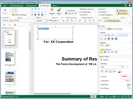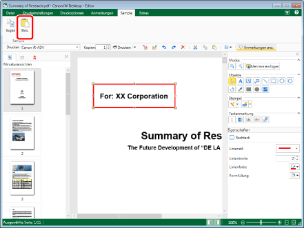 Wenn die nächste Seite als Zielort für das Einfügen angegeben wird, wird die Anmerkung an derselben Position wie auf der Ausgangsseite eingefügt.