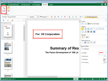 Sie können Anmerkungen zwischen mehreren Desktop Editor-Bildschirmen kopieren, ausschneiden und einfügen.