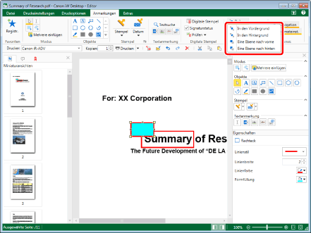 Bei Auswahl mehrerer Anmerkungen wird die Überlappungsreihenfolge dieser Objekte nicht verändert.