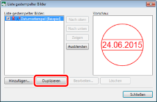 Sie können voreingestellte Stempel, die während der Installation automatisch registriert wurden, nicht bearbeiten. Stempel, die auf der Grundlage dieser Stempel dupliziert wurden, können Sie jedoch bearbeiten.