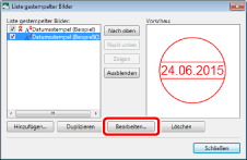 Bearbeiten Sie die Einstellungen registrierter gestempelter Bilder im Dialogfeld [Gestempeltes Bild bearbeiten].