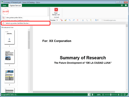 Wenn der Modus digitale Stempel aktiv ist, wird die Registerkarte [Anmerkungsliste] im Navigationsfenster ausgeblendet.