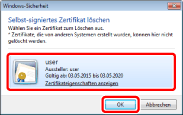 Nur selbst signierte Zertifikate, die in Desktop Editor erstellt wurden, werden im Dialogfeld [Selbst-signiertes Zertifikat löschen] angezeigt.