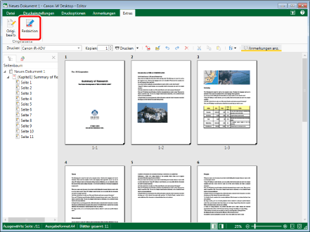 Wenn der Neubearbeitungsmodus aktiv ist, werden im Menüband keine weiteren Registerkarten außer [Redaktion] angezeigt.
