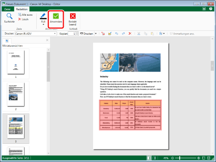 Beim Übernehmen von Redaktionsmarkierungen für ein PDF-Dokument, in dem mit Adobe Acrobat eine digitale Signatur und ein Wasserzeichen hinzugefügt wurde und das dann mit dem Desktop Editor importiert wurde, werden Redaktionsmarkierungen an einem bereits vor dem Import vorhandenen Wasserzeichen auch für Instanzen dieses Wasserzeichens auf anderen Seiten im Dokument übernommen.
