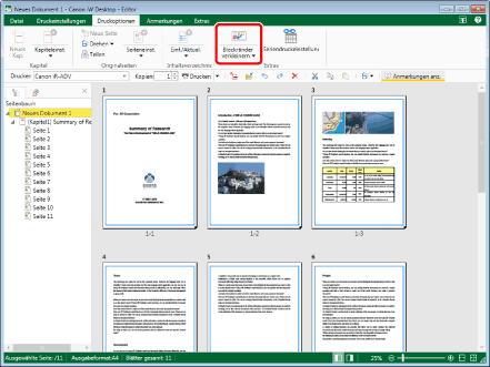 (Rückgängig) in der Symbolleiste klicken, können Sie das Dokument auf den Zustand vor der Verkleinerung der Rändern zurücksetzen.Die folgenden Seiten gelten beim Verkleinern von Rändern zwischen Blöcken auf aufeinanderfolgenden Seiten nicht als Ziel. Objekte auf diesen Seiten werden daher nicht verschoben.